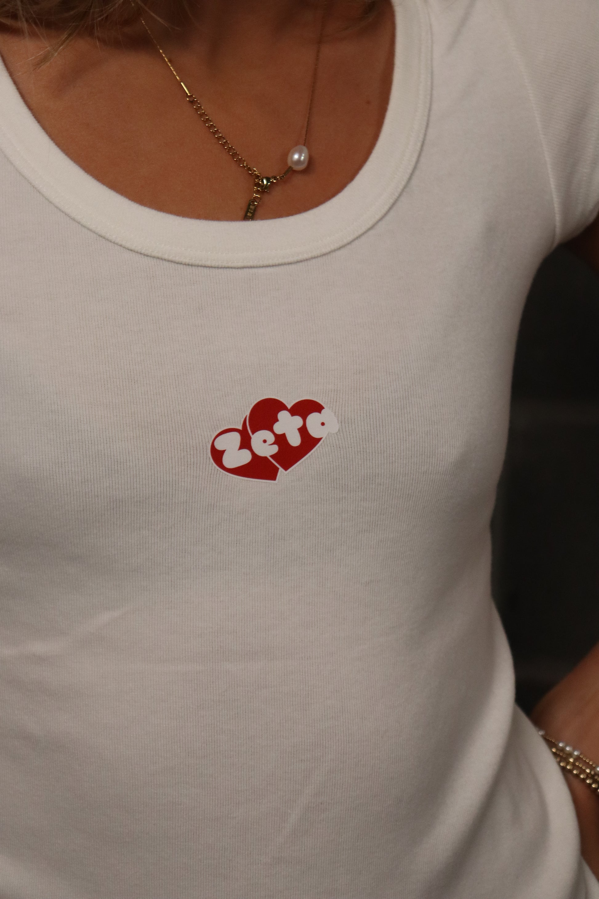 Brandy Melville Zelly Long Top - Cream Zeta Heart T-Shrt